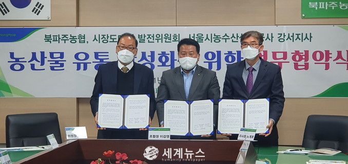 [세계뉴스 차성민 기자] 서울시농수산식품공사(사장 김경호)는 29일 시장도매인 발전위원회(회장 임완상)와 공동으로 북파주농협(조합장 이갑영)과 농수산물 유통 활성화를 위한 업무협약을 체결했다.