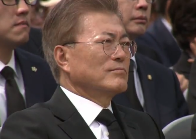 문 대통령은 "제가 대선 때 했던 약속, 오늘 이 추도식에 대통령으로 참석하겠다고 한 약속을 지킬 수 있게 해주신 것에 대해서 깊이 감사드린다"는 말로 운을 뗐다.
