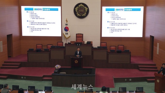 [세계뉴스] 전승원 기자 = 서울시의회 더불어민주당은 4일 오후4시 서울시의회 본회의장에서 의원총회를 소집 ‘더불어민주당 대표의원 보궐선거 결과보고 및 추인’ 등 ‘제19대 대선 광역의원 활동 방안과 의원별 현안사업 수렴’ 안건을 처리헀다.