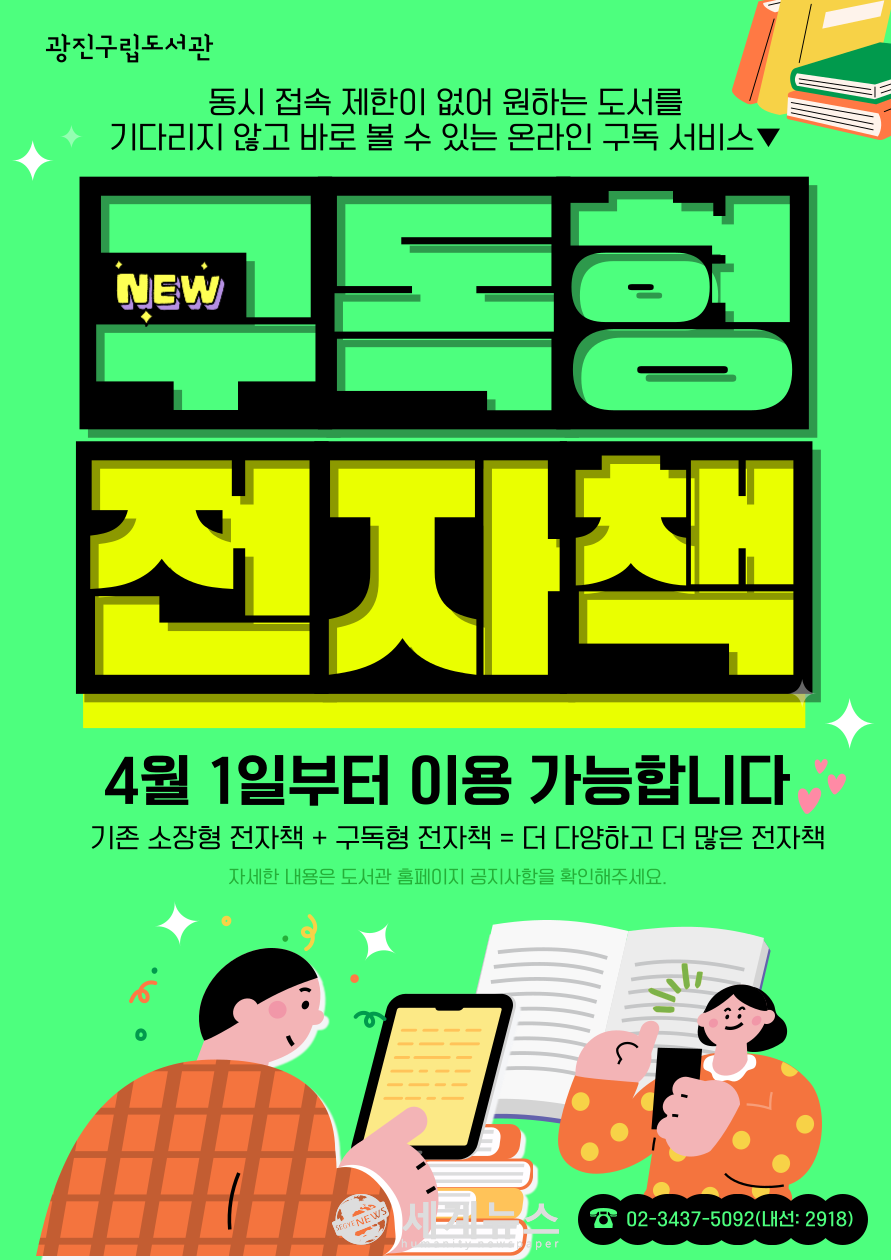 [세계뉴스 = 조홍식 기자] 광진구가 구민들의 독서 편의를 높이기 위해 4월부터 '구독형 전자책' 서비스를 시작했다.