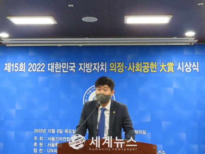 이어 “2022년도 한 달 정도밖에 남지 않았는데 지금 시의회 예산심의가 남아있는 상황으로 저희가 더 열심히 할수록 우리 서울시민이 더 행복하다는 생각을 가지고 열심히 의정활동을 하도록 하겠습니다. 그리고 오늘 수상자분들 진심으로 축하드리고요. 준비해주신 서울기자연합회 관계자분 다시 한 번 감사드립니다.” 라고 덧붙였다.