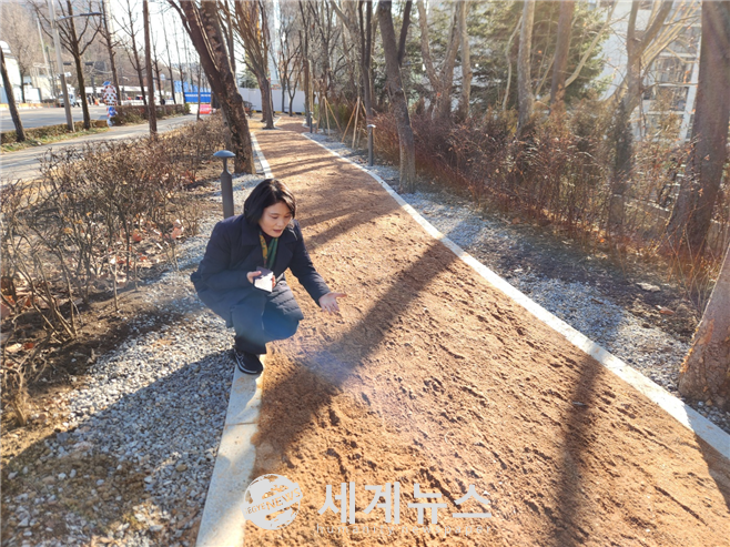 [세계뉴스 윤소라 기자] 박춘선 서울시의원(강동3, 국민의힘)이 ‘동남로 일대 시설녹지 정비 공사’가 완료되었다고 밝혔다. 이번 사업으로 동남로 일대 황톳길, 흙 콘크리트 산책로 등이 조성되어 녹지공간과 주민의 휴식이 가능한 힐링공간이 탄생하게 되었다.