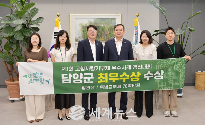 [세계뉴스 양경희 기자] 담양군이 ‘제1회 고향사랑기부제 우수사례 경진대회’에서 전국 226개 기초지자체 중 1위로 최우수상을 받아 특별교부세 7,000만 원을 확보했다.