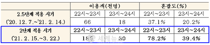- 사회적 거리두기 2단계 적용 후 야간 이용객 점차 증가…혼잡도도 조금씩 높아져