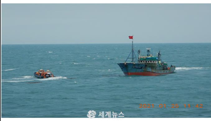 [세계뉴스 윤준필 기자] 해양수산부(장관 문성혁)는 우리수역 입어 관련 규정을 위반한 혐의가 있는 중국어선 1척을 1월 25일에 나포하였다고 밝혔다.