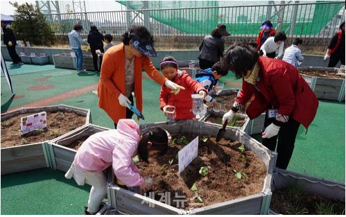 [세계뉴스] 조홍식 기자 = 성동구도시관리공단(이사장 김종수)에서 운영하는 용답어린이집은 지난 11일 유아들과 조부모가 함께 건강 텃밭에 모종을 심었다.