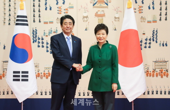 [서울=세계뉴스] 조상호 기자 = 박근혜 대통령과 아베 신조(安倍晋三) 일본 총리는 2일 한일관계 최대 현안인 일본군 위안부 문제와 관련, 위안부 문제 조기타결을 위한 양국간 협의를 가속화하기로 했다.