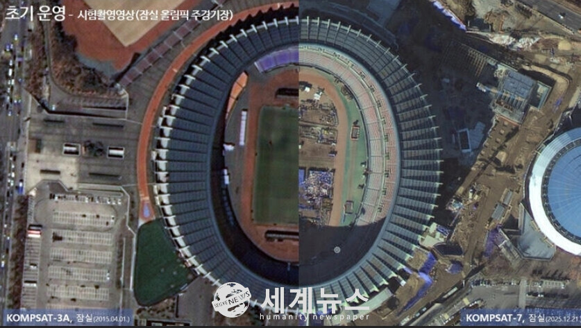 우주항공청은 17일 두 위성이 지난해 발사 이후 진행해온 초기운영 결과를 소개하고, 아리랑 7호가 촬영한 서울 잠실 일대 고해상도 시험 영상을 공개했다. 공개된 영상에는 잠실 올림픽 경기장과 롯데월드타워 등이 또렷하게 포착돼, 위성의 정밀 관측 능력을 입증했다.