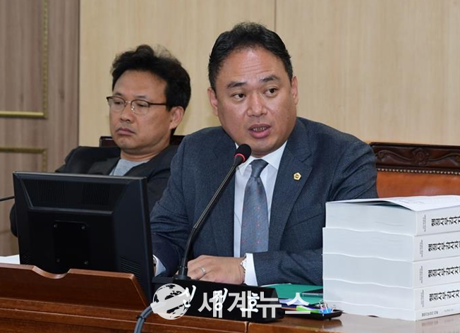 ▲ 신정호 서울시의원이 지난 24일 제286회 임시회 서울주택도시공사(SH공사) 업무보고에서 "장애인 고용비율이 법적에도 못미치고 있다"며 "고용의무를 다하라"고 질타하고 있다. |