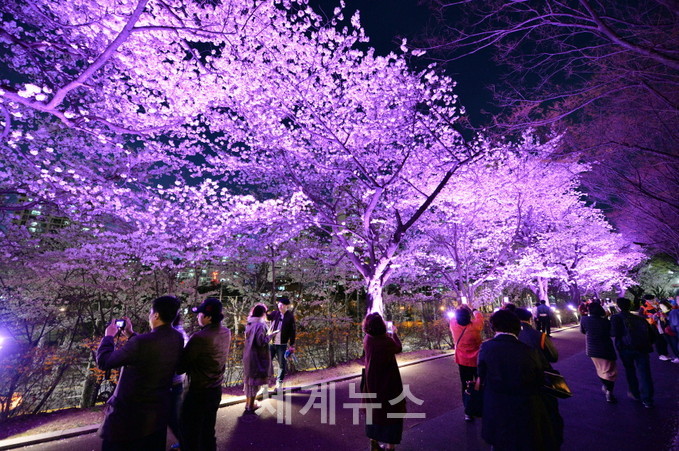 ▲ 경관조명이 시범설치 된 장안벚꽃길 (지난해 중랑천 제1체육공원앞). © 세계뉴스 |