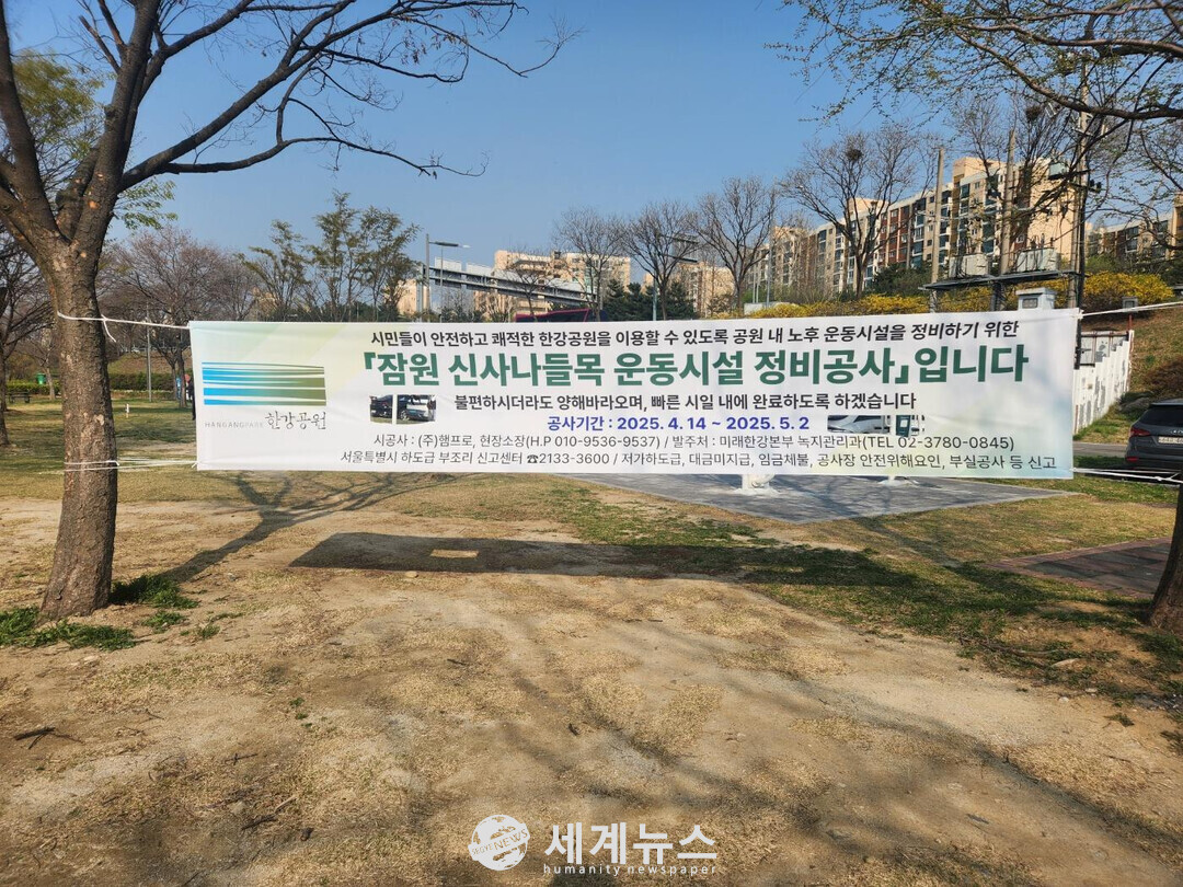[세계뉴스 = 윤소라 기자] 서울특별시의회 교육위원회 소속 이새날 의원(국민의힘, 강남1)은 18일 한강공원 잠원 신사나들목 부근의 운동시설 정비공사가 본격적으로 시작된 것에 대해 환영의 뜻을 전했다.