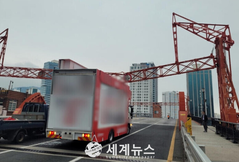 [세계뉴스 = 석숭조 기자] 15일 오전 부산 영도대교에서 국민의힘 김문수 대선 후보의 유세차량이 시설물과 충돌하는 사고가 발생했다.