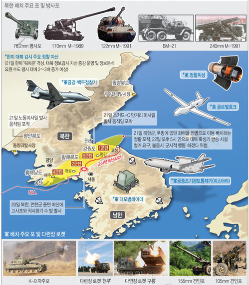 군 관계자는 이날 "북한군이 후방에 있던 화력을 전방으로 이동 배치하는 정황이 포착됐다"고 밝혔다.