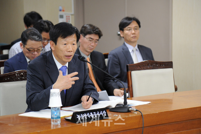 ▲ 29일 서울시의회 기획경제위원실에서 실시된 인사검증에서 위원들의 질의에 신임 박현출 서울시농수산식품공사 사장이 답변하고 있다. © 세계뉴스 |