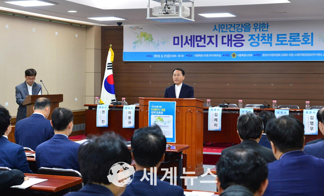 [세계뉴스] 정서영 기자 = 서울특별시의회 환경수자원위원회의 미세먼지 대책 소위원회 김제리 위원장(더불어민주당·용산1)은 지난 21일 오후 2시 서울시의회 제1대회의실에서 개최된 ‘시민건강을 위한 미세먼지 대응 정책 토론회’를 개최했다.