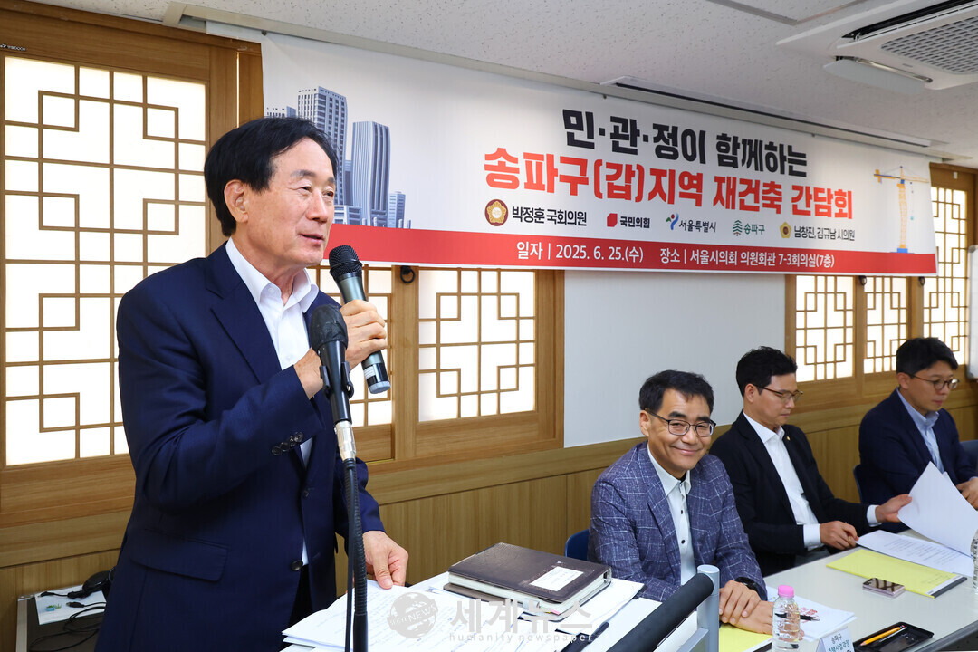 [세계뉴스 = 윤소라 기자] 서울 송파구 아파트 재건축 사업이 임대주택 비율 문제로 난항을 겪고 있다. 지난 6월 서울특별시의회에서 열린 간담회에서 남창진 의원(국민의힘, 송파2)과 박정훈 국회의원 등 지역 정치인들은 송파(갑) 지역 13개 아파트단지의 재건축 조합장, 추진위원장, 서울시 및 송파구청 관계자들과 함께 재건축 문제를 논의했다.