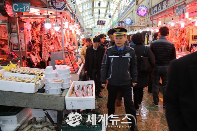 이번 방문은 전통시장에 활력을 불어넣기 위해 김동진 서장과 경찰관 60여명이함께 시장을 찾아 생선, 과일 등 설 제수용품을 구매하였다.