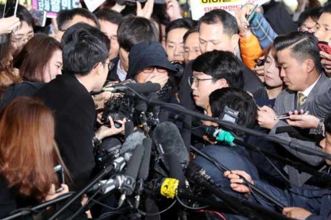 취재진도 포토라인을 설정하고 최씨가 이 라인에 서면 간략하게 질의응답을 가질 예정이었다. 하지만 검찰 수사관들이 최씨를 호위하며 이동하는 과정에서 취재진과 최씨에 대한 규탄 시위를 하는 시민단체 관계자들이 엉기면서 주변은 아수라장으로 변했다.
