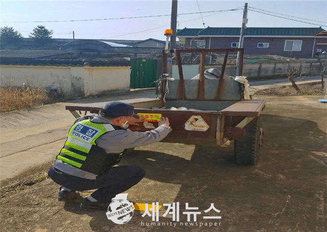 [세계뉴스 윤준필 기자] 부안경찰서(서장 박훈기) 서림지구대에서는본격적인 봄 영농철을 앞두고 농기계 및 장애인전동차로 인한 교통사고예방을 위해 서림생활안전협의회와 합동으로 야광 반사지 부착 등 사고예방 홍보에 나섰다.