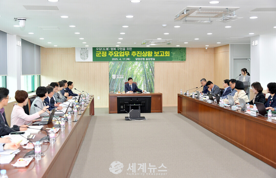 [세계뉴스 = 양경희 기자] 담양군(군수 정철원)은 17일 송강정실에서 정철원 군수 취임 이후 처음으로 ‘군정 주요 업무 추진상황 보고회’를 개최하고, 군정 운영 방향과 중점 추진 과제를 공유했다.