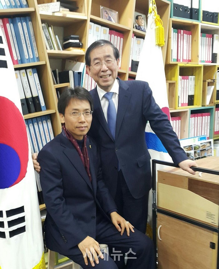 ▲ 박원순 서울시장실을 방문한 김광수 서울시의원과 기념촬영을 하고 있다. © 세계뉴스 |