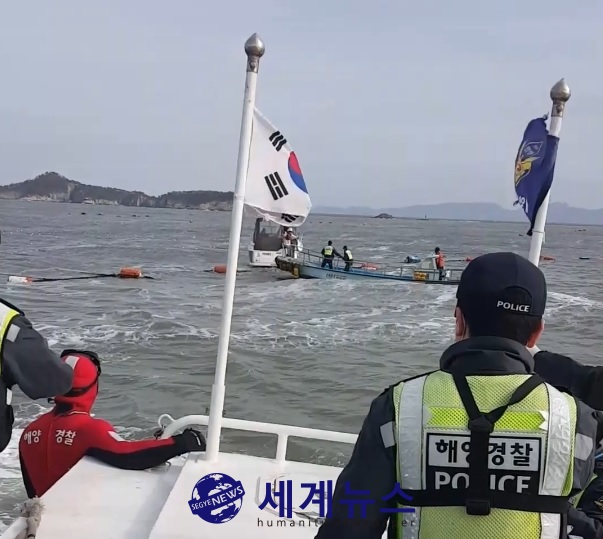 신고 접수 후 9분 만에 현장에 도착한 해경과 민간자율구조선은 즉시 구조에 나섰지만 당시 파도와 바람이 거세 해경 구조정의 예인(曳引, 견인)줄이 파손되는 상황까지 이어졌다.