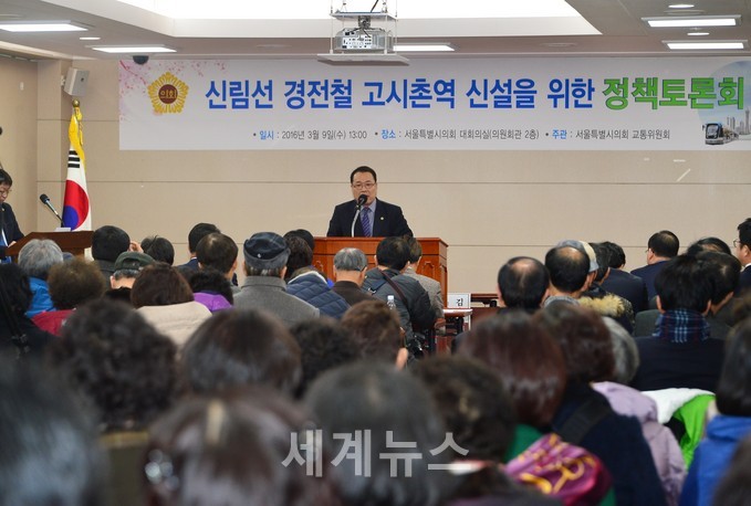 [서울=세계뉴스] 전승원 기자 = 서울시의회는 9일 오후 1시 의원회관 2층 대회의실에서 “신림선 경전철 고시촌역 신설을 위한 정책토론회”를 개최했다.