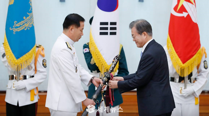 [세계뉴스] 탁병훈 기자 = 문재인 대통령은 오전 11시 심승섭 신임 해군참모총장으로부터 보직 및 진급 신고를 받았다.