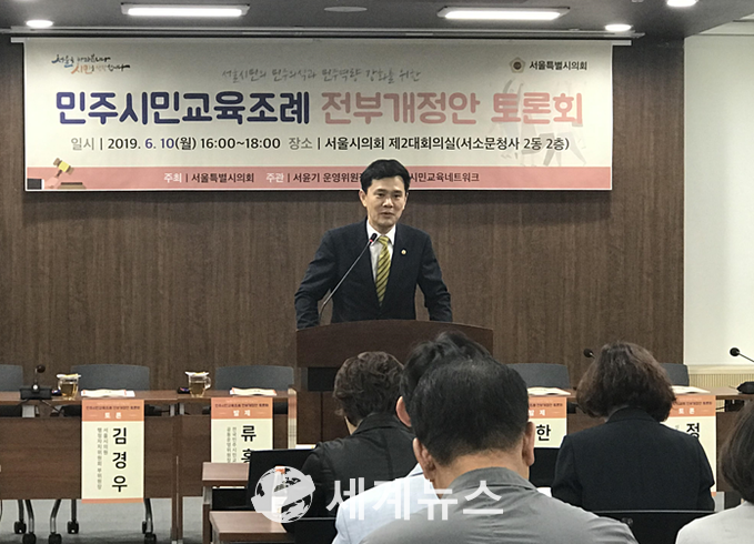 [세계뉴스] 정서영 기자 = 서윤기 서울시의회 운영위원장(더불어민주당, 관악2)은 지난 10일 민주시민교육의 체계적, 안정적 실시를 위해 전문성을 갖춘 서울시 차원의 전담기구 설립 등을 규정한 ‘서울특별시 민주시민교육조례 전부개정안’ 토론회를 개최했다.