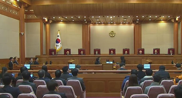 ▲ 26일 오후 서울종로구 헌법재판소 대심판정에서 새누리당 의원 19명이 국회의장과 국회 기획재정위원장을 상대로 낸 '국회선진화법' 권한쟁의 심판 청구가 각하됐다. © 세계뉴스 |