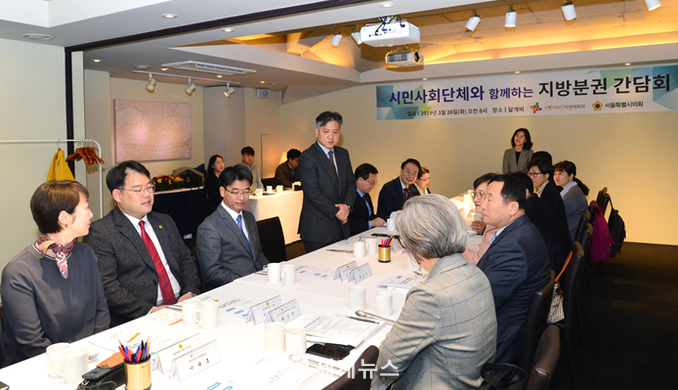 ▲ 26일 신원철 의장은 '시민사회단체와 함께하는 지방분권 간담회'에서 모두발언을 통해 "시민사회단체와의 협력과 네트워크 형성을 통해 지방분권 실현과 서울시의회 위상정립의 계기를 마련하겠다"고 말했다. |