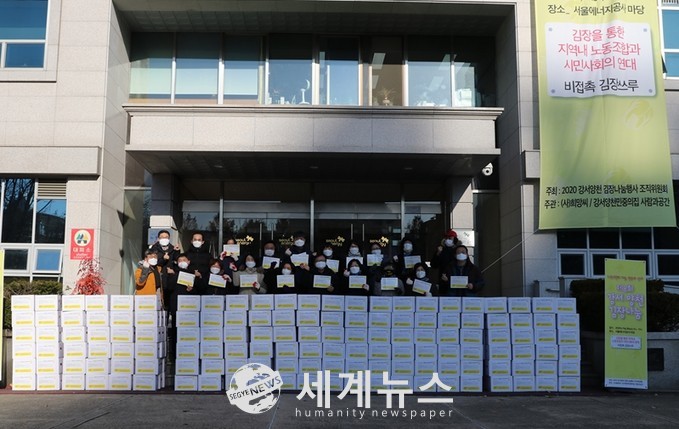 [세계뉴스 차성민 기자] 서울에너지공사(사장 김중식)는 29일 노동조합과 함께 서울 양천구 소재 본사에서 지역아동센터, 장애인센터, 청소년 쉼터 등 27개 센터와 취약계층 150여 가구를 대상으로 사랑의 김장김치 나눔 행사를 실시한다.