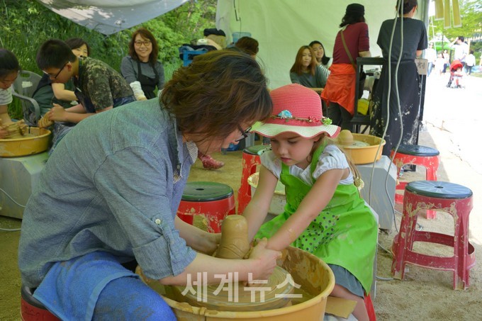 ▲ 도자기 체험장에서 어린이가 도자기 빚기에 정성을 쏟고 있다. © 세계뉴스 |