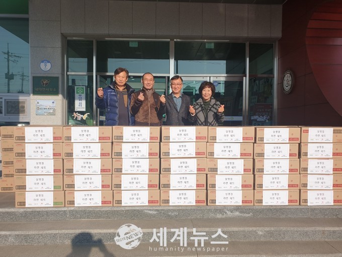[세계뉴스 윤준필 기자] 군산시 대야면은 ㈜풀무원(대표이사 이효율)이 설 명절을 앞두고 15일 대야면 경로당에 전달해 달라며 라면 100상자(환가액 300만 원 상당)를 기탁했다.