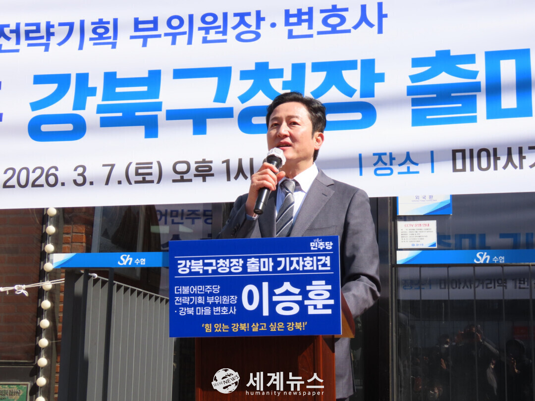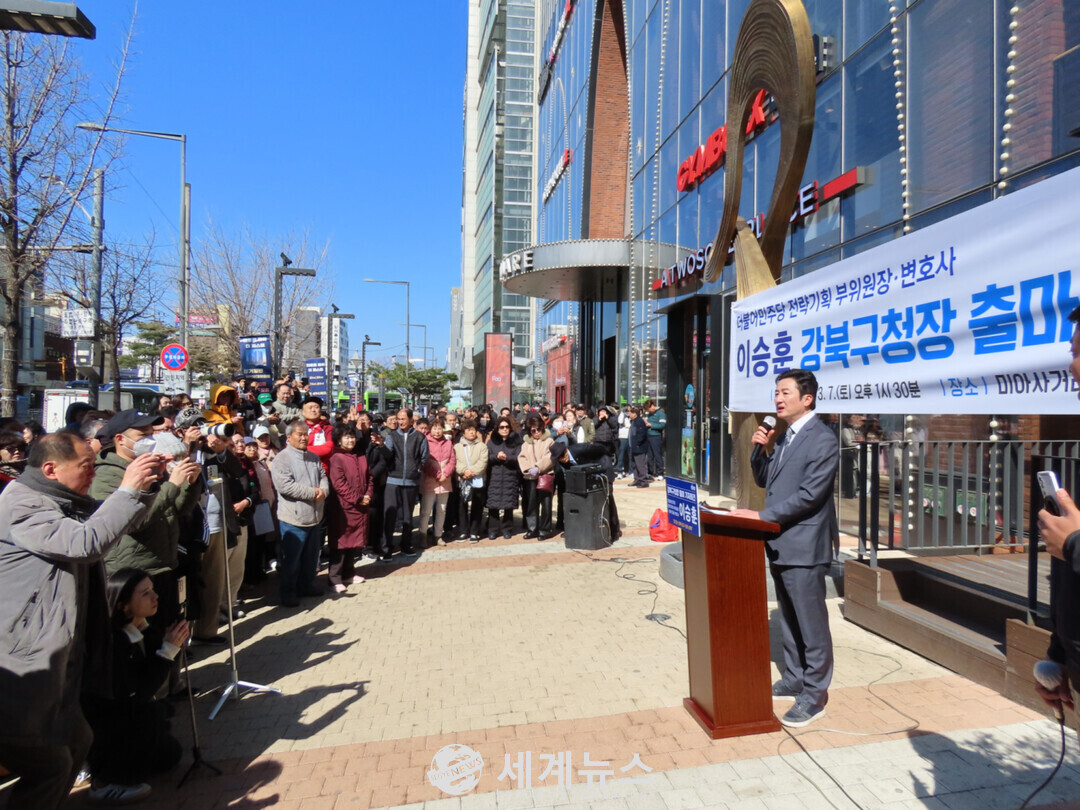 [세계뉴스 = 전승원 기자] 더불어민주당 이승훈 변호사가 강북구 재정혁신과 행정개혁, 지역경제 활성화를 핵심으로 한 정책을 제시하며 강북구청장 선거 출마를 공식 선언했다.