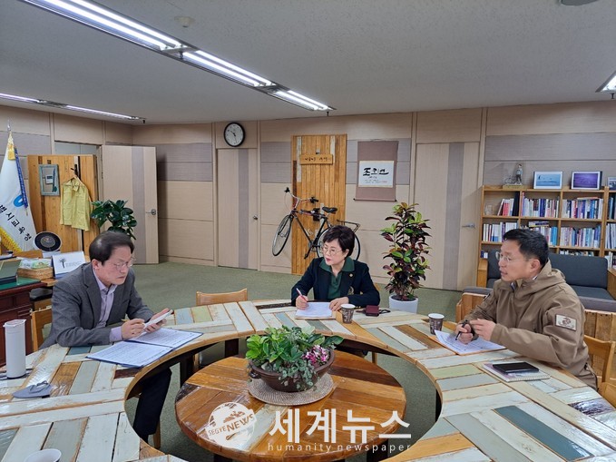 ▲ 지난 9일 이경숙(가운데) 학력향상특위 위원장이 조희연(왼쪽) 서울특별시교육감과 기초학력 보장 지원 대책 강화를 위한 간담회를 통해 초·중·고 각 1개 학년 학생 전체를 대상으로 한 진단평가의 조속한 시행과 ‘(가칭) 서울특별시교육청 학력개발원’ 설립을 제안하여 책임감 있는 기초학력 보장지원을 위한 정책을 제안했다. |