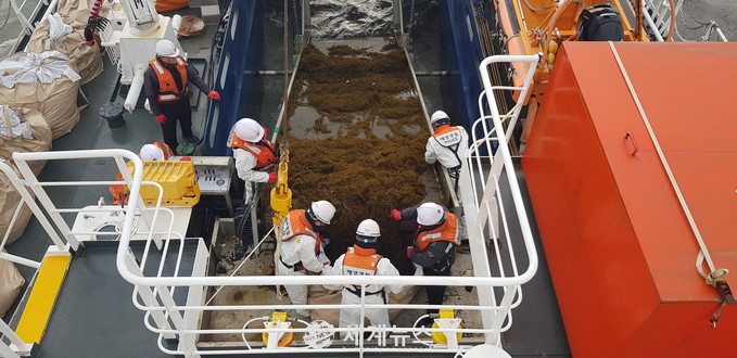 특히 벨트식 유회수기를 갖춘 방제정의 경우 부유한 물질을 회수해 효과적인 모자반 수거가 가능하다.