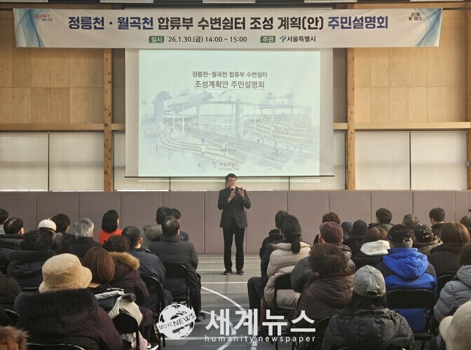 [세계뉴스 = 윤소라 기자] 정릉천과 월곡천이 만나는 성북구 종암박스파크에서 '정릉천·월곡천 합류부 수변쉼터 조성 사업 주민설명회'가 30일 열렸다.