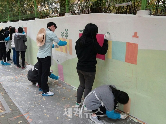 ▲ 벽화그리기 재능기부에 나선 학생들 © 세계뉴스 |