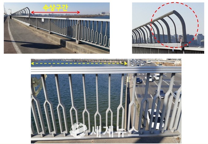 ▲ 마포대교 자살방지난간 현황. (강변북로 상부) |