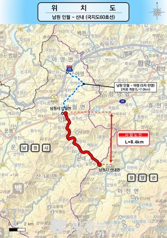 [세계뉴스 이정열 기자] 국토교통부에서 추진 중인 제6차 국도‧국지도 건설계획 예비타당성조사 대상사업에 남원시 도로 2개 노선이 선정되었다.