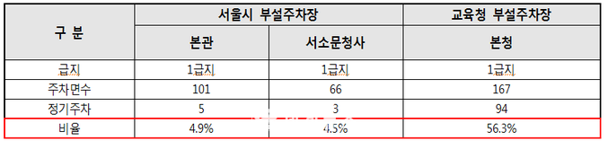 ▲ 서울시교육청 부설주차장 및 서울시 공영주차장 사용료 현황. |