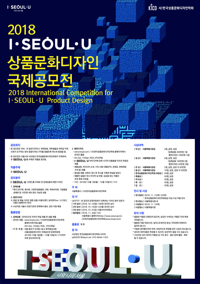 입체상품의 경우, 아이서울유가 들어간 제품이면 문구, 팬시, 가정주방용품, 의류, 액세서리 등 출품 종류에 제한을 두지 않는다. 다만, 완성된 제품의 소비자 가격이 10만원 내외여야 한다. 평면디자인도 아이서울유가 포함된 시각디자인, 디지털콘텐츠디자인, SP디자인, 패션뷰티디자인 등의 디자인을 그림 파일로 제출하면 된다.