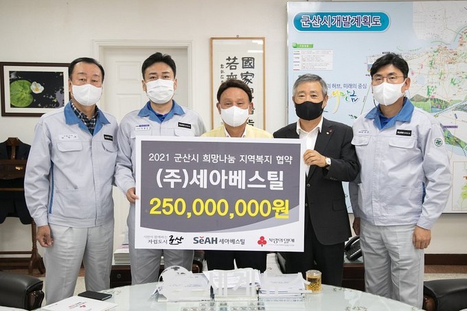 [세계뉴스 윤준필 기자] 군산시는 ㈜세아베스틸, 전북사회복지공동모금회(회장 김동수)와 지역사회 나눔 문화 활성화를 위해 2021년 희망나눔 지역복지 협약을 체결했다고 17일 밝혔다.