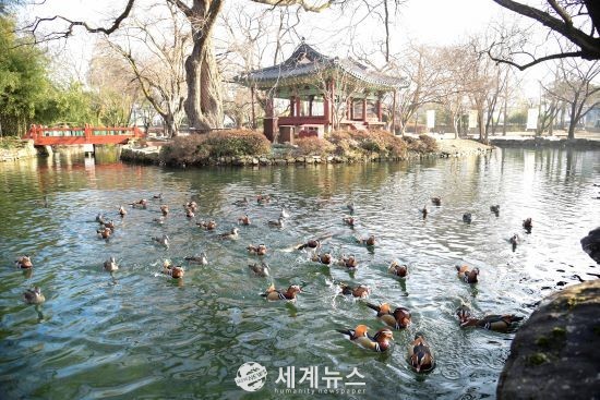 [세계뉴스 이정열 기자] 남원 광한루원이 일년내내 다양한 매력으로 방문객들을 매료시키고 있는 가운데 겨울을 맞은 광한루원에는 원앙이 돋보이는 아름다움으로 관광객의 눈길을 끌고 있어 화제다.
