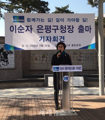 [세계뉴스] 정서영 기자 = 서울특별시의회 이순자 의원(더불어 민주당, 은평구 제1선거구)은 26일 오전 11시 은평구 연신내 물빛공원에서 기자회견을 열고, 6·13 지방선거에서 서울시 은평구청장에 출마한다고 밝혔다.