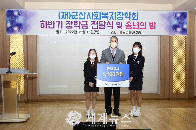 [세계뉴스 윤준필 기자] 전북(재)군산사회복지장학회에서는 12월 15일 한원컨벤션에서 2022년 하반기 장학금 전달식을 강임준 군산시장. 김영일 시의장을 비롯한 회원 및 가족 등 100여명이 참석한 가운데 관내 초·중·고 190여명의 학생들에게 5천4백만 원의 장학금을 지급하였다.