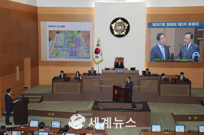 [세계뉴스] 정서영 기자 = 서울시의회 보건복지위원회 소속의 김용연 의원(더불어민주당, 강서4)은 12일 서울특별시의회 제287회 정례회 시정질문을 통하여 박원순 서울시장에게 강서 마곡지구 내 공공보행통로 관리 부실과 서남물재생센터 현대화 사업 준공 지연을 지적하고, 서남물재생센터 내 공공임대주택 건립 및 열병합발전센터 증설 계획 수립 시 지역 주민과의 협의가 없었다고 질타했다.
