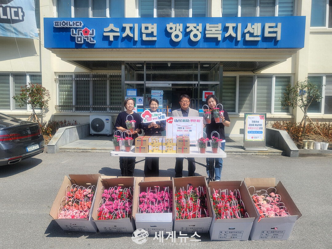 [세계뉴스 = 이정열 기자] 가정의 달 5월을 맞아 수지면에 따뜻한 감동이 전해지고 있다. 도통동 소재 꽃집 ‘탄생화’를 운영 중인 손경미 대표가 어버이날을 앞두고 수지면에 카네이션과 간식세트를 기부하며 지역사회에 따뜻한 감동을 전했다.