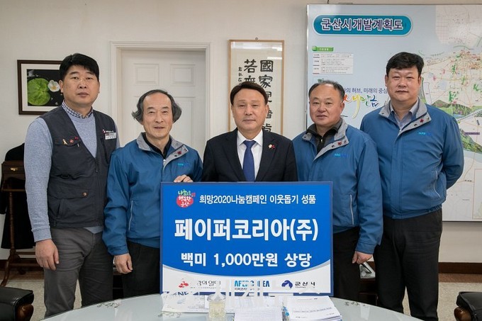 지난 14일 군산을 대표하는 향토기업 페이퍼코리아(주) (대표이사 권육상)는 올해에도 어려운 이웃을 위해 백미(10kg) 400포(1,000만 원 상당)를 군산시에 기탁했다.